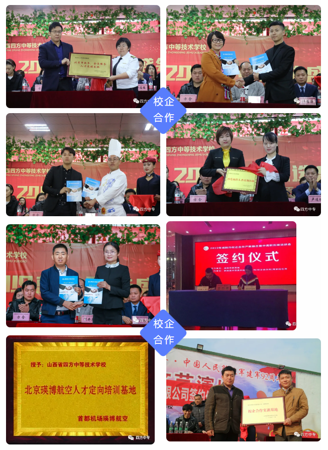 同学们报名成功入学后立即在职业规划导师指导下签订就业协议,入学时将“就业教育” “职业规划指导课”作为新生教育的重点课程,帮助每一位同学树立学习目标,确定职业发展方向。 02 深化校企合作 校企合作是贯彻落实教育改革发展的重要内容,是我校人才培养的特色,是保证学生“入学即就业”的重要举措。我校与多家知名企业达成校企合作,专业老师带队不定期走访名企,企业也定期到我校举行讲座,让学生提前感受企业文化和技术魅力,明确工作方向。 03 就业双选会 为更好地促进我校毕业生充分就业,进一步提升毕业生就业质量,搭建毕业生和用人单位之间的双向选择平台,每年5月份学校都会举办就业双选会,邀请众多知名企业负责人现场招聘,学生现场即可选定心仪的就业单位进行面试,面试通过企业当场将offer送至学生手中。 梦为彼岸,扬帆起航|山西省四方中等技术学校2019双选盛会顺利召开 03 就业双选会 在学生毕业的时候,为学生提供优质满意的就业单位后,学校定期还会安排学校领导老师前往合作企业单位进行走访,了解学生的工作情况。 毕业生就业展示毕业生就业展示 常毅丽 山西省长治市 巴黎贝甜烘培师 薪资:5300元 郭新元 山西省朔州市 风渡嘉合调酒师 薪资:5200元 苏江乐 太原市清徐县 东方名剪 薪资:4000元 冯智慧 山西省大同市 薪资:4000元 王宇柯、郭文慧 山西省长治市 薪资:4000-5000元 李耀、师树杰(中阳) 成志杰(榆次) 天水雅居 薪资:4000元 王鑫 太原市小店区 市政专列 薪资:6000元