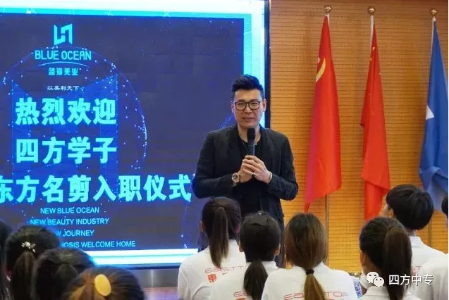 2018年5月11日,我校形象设计系50多名学生顺利进入北京东方名剪企业,企业总部为学生举办了入职欢迎仪式。蓝海美业时尚集团总裁吕杰恩出席仪式,东方名剪品牌各区域总经理、店长代表、相关职能部门负责人参加仪式。