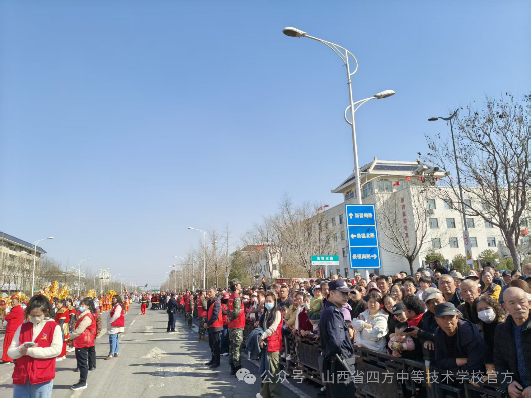 3月20日,晋源区“二月二”民俗活动如期举行。为助力地方民俗文化盛会安全有序开展,我校坚持党建引领,深化实践育人,精心组织132名党团员、国防班学生志愿者投身活动安保服务,以青春担当守护群众平安,用实际行动擦亮文明底色。