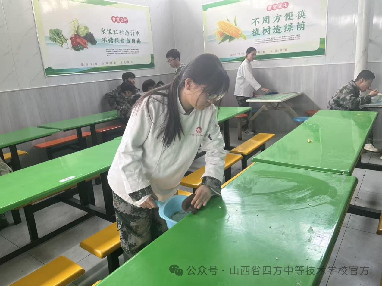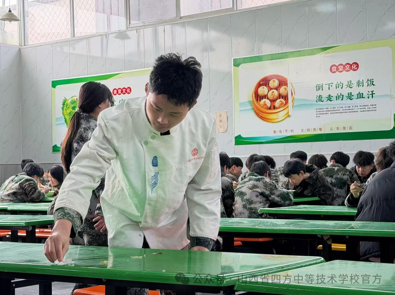 活动期间,志愿者们身穿专业制服,主动承担餐厅清洁工作,认真擦拭餐桌、清理剩饭剩菜,用双手维护整洁的就餐环境,以实际行动诠释雷锋的劳动奉献精神。同时,同学们手持“弘扬雷锋好榜样,争做节约标兵”“一粥一饭当思来之不易”等宣传牌,在餐厅内倡导光盘行动、餐桌礼仪,引导师生文明就餐、珍惜粮食。此外,志愿者还协助维持就餐秩序,提醒同学有序排队,帮助食堂工作人员完成力所能及的服务,在实践中展现餐饮专业素养,传递温暖与正能量。