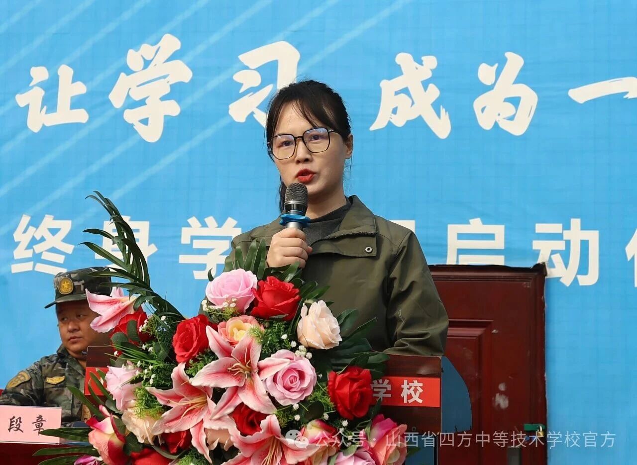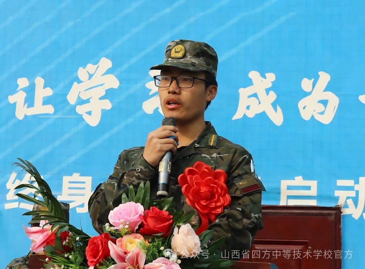 国防班学生代表蔚佳将在发言中表达了对学校培养的感激之情,并代表全体学员郑重承诺,将以饱满的热情、严明的纪律投入实践锻炼,展现示范班学生的良好风貌。