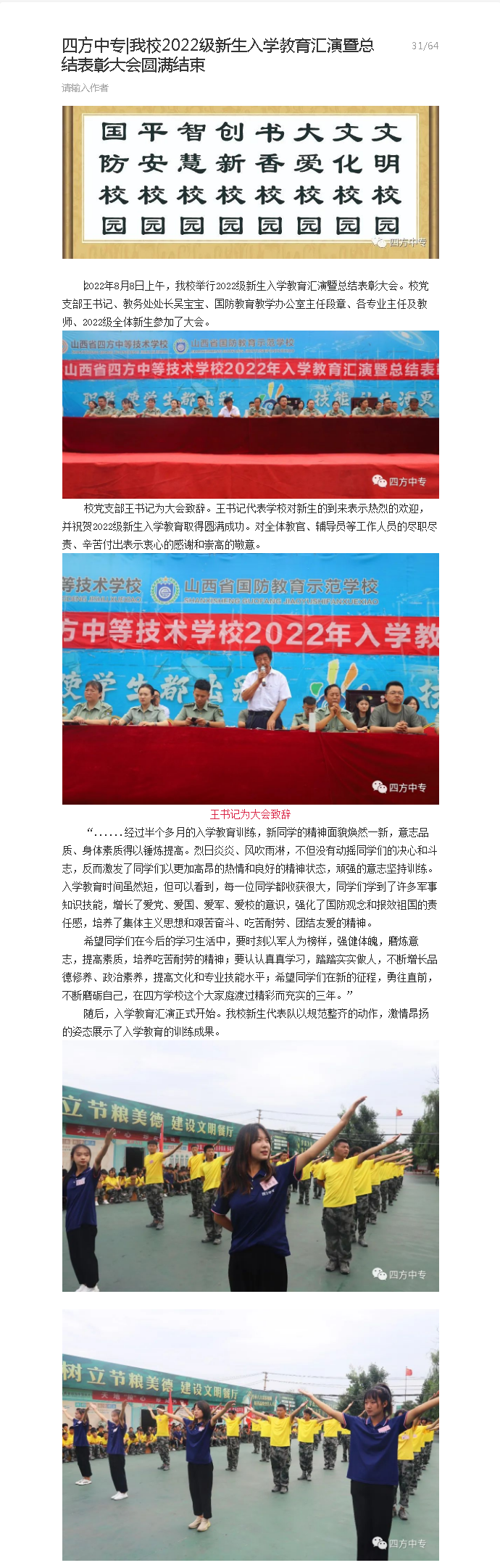 我校2022级新生入学教育汇演暨总结表彰大会圆满结束