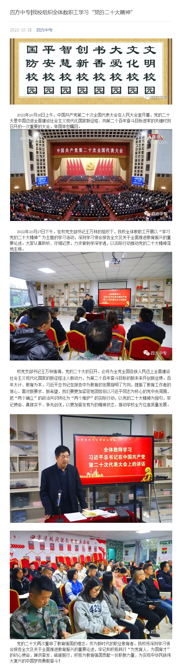 我校组织全体教职工学习“党的二十大精神”