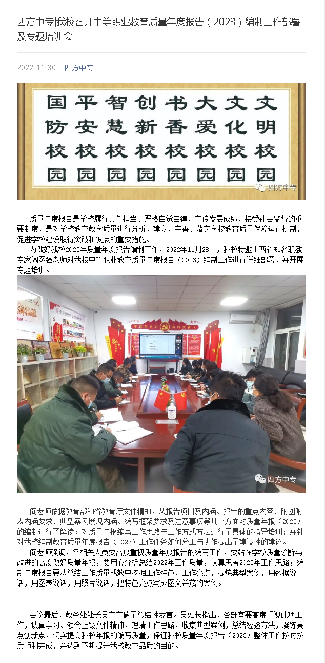 我校召开中等职业教育质量年度报告(2023)编制工作部署及专题培训会