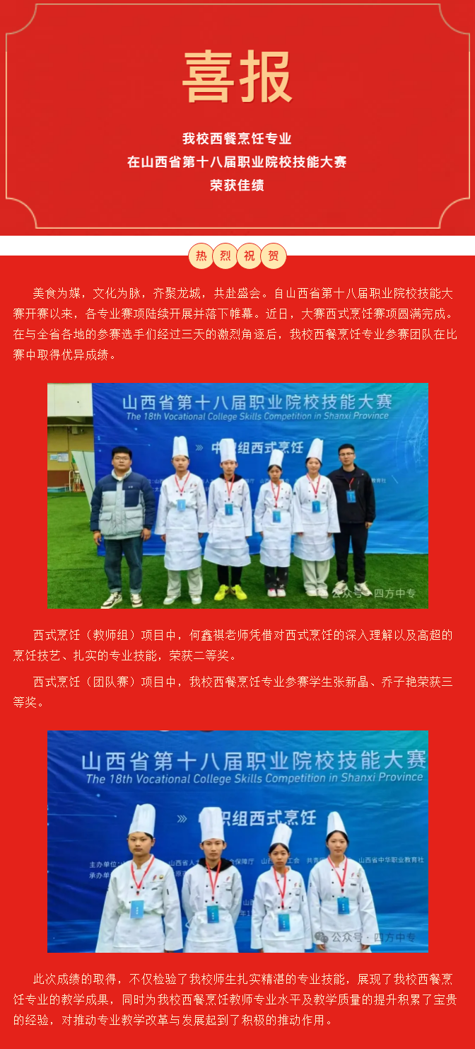 喜报频传|我校西餐烹饪专业在山西省第十八届职业院校技能大赛中荣获佳绩