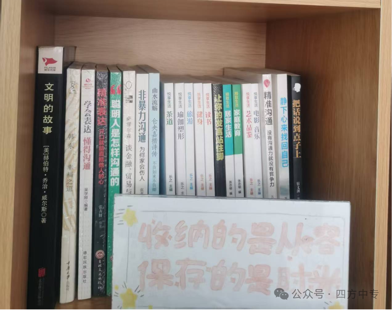 在书香传播者行动中,同学们精准分类,对照类别,重排错位图书300余册;宣传“爱护图书、保持安静”的文明公约;设计以"轻取轻放·书归有缘"为主题的提示卡......一张张提示卡,以素简设计承载厚重心意——翻阅时的指尖温度、归还时的郑重托付,都在提醒:书籍不仅是知识的载体,更是流动的文明信物。