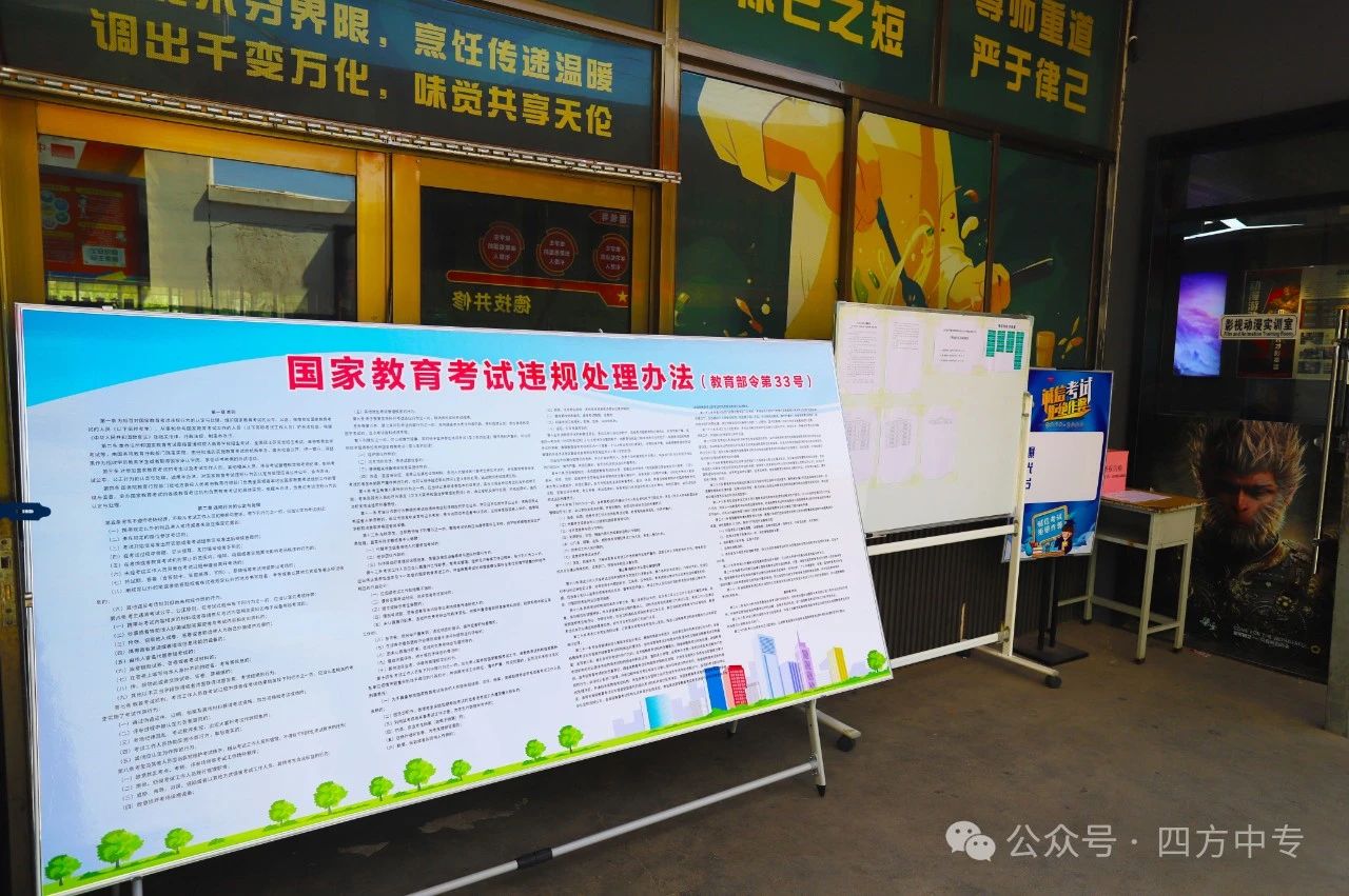 为确保测试安全公平有序,学校成立专项工作领导小组,由校长牵头,教务处、相关专业部、后勤处等多部门联动,召开考务工作协调会,细化考务流程、应急预案及后勤保障方案。考前对考场设备、工具材料进行全面检查调试,并在考场内配备全域监控设备,确保考场符合技能考核标准及全过程可追溯。考场实行"双监考+巡考"制度,考场秩序井然,未出现违规违纪现象。