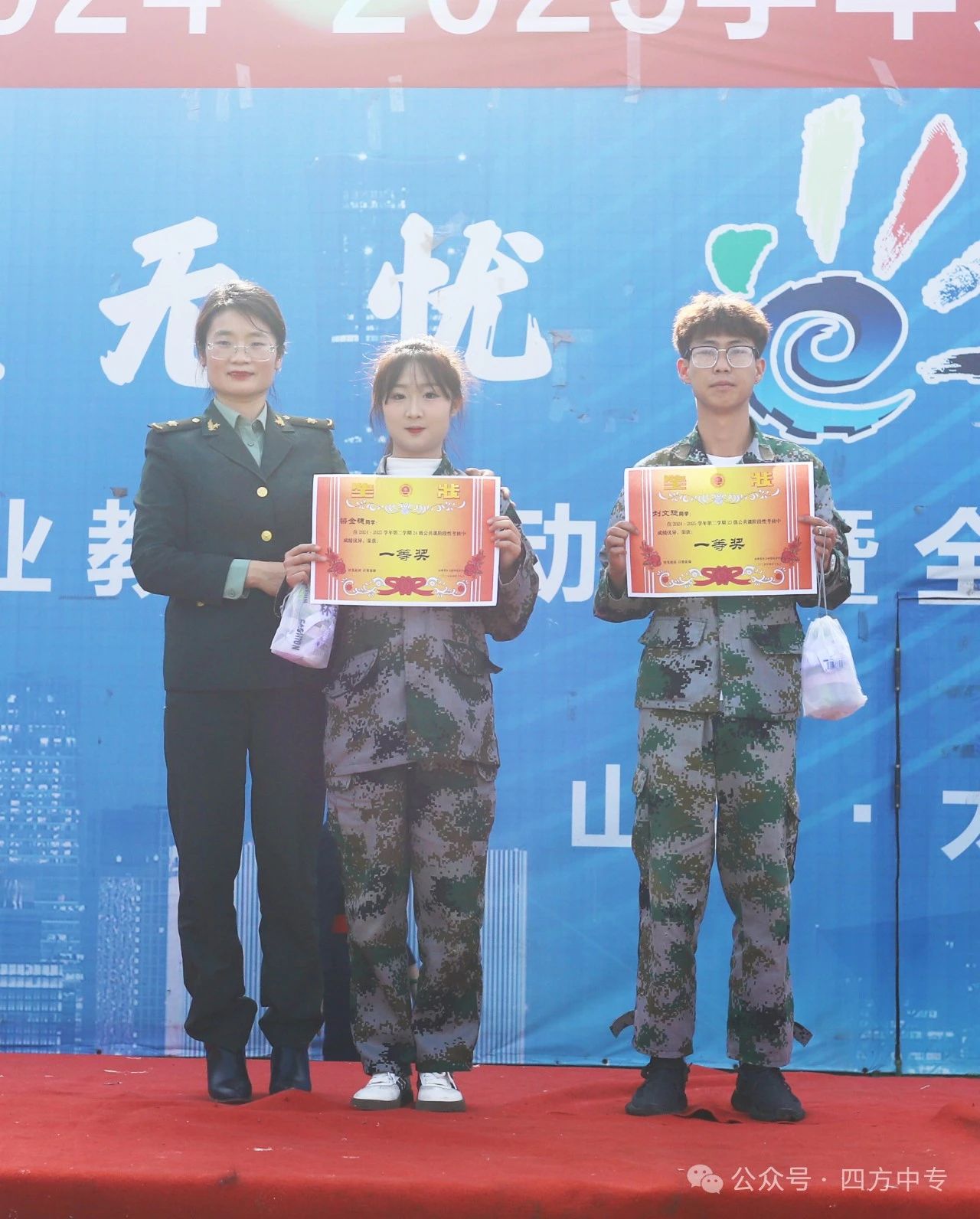 表彰环节将大会推向高潮。主持人宣读了表彰名单,校长刘萍萍、校党支部书记王万林及各部门负责人为获奖同学颁发了荣誉证书和奖品。