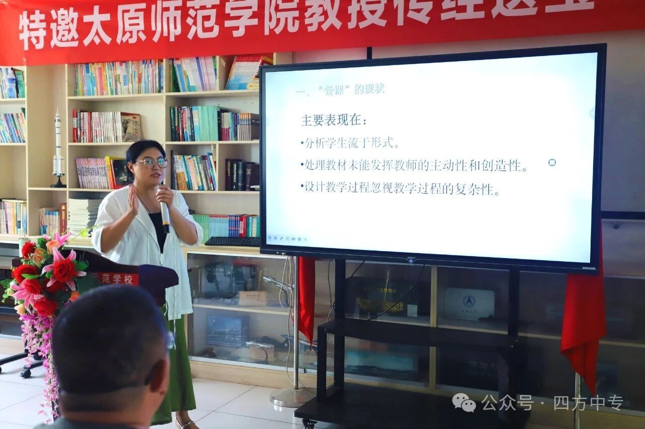 为推动学校关于“新学期·新起点·新教研·新突破”的要求,进一步深化课堂教学改革,提升教师专业素养与备课质量,夯实教学基本功,2025年8月20日,我校特邀太原师范学院教学专家李一敏教授传经送宝,开展了一场以“共研备课之道,促进教学提升”为主题的深度教研活动。