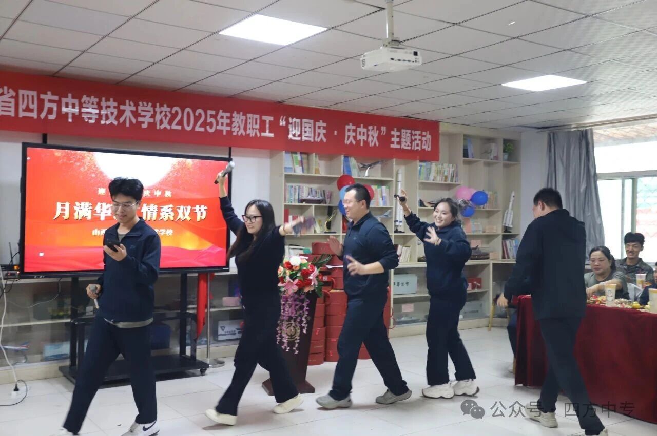 国庆红旗飘扬,彰显着 的繁荣昌盛;中秋佳节明月,承载着团圆的美好期盼。我校全体教职工用歌声与欢笑,表达了对祖国的热爱,对团圆的期盼。他们将把今天的快乐化作工作的动力,以更饱满的热情投身于学校教育教学事业,投身于 职业教育发展。