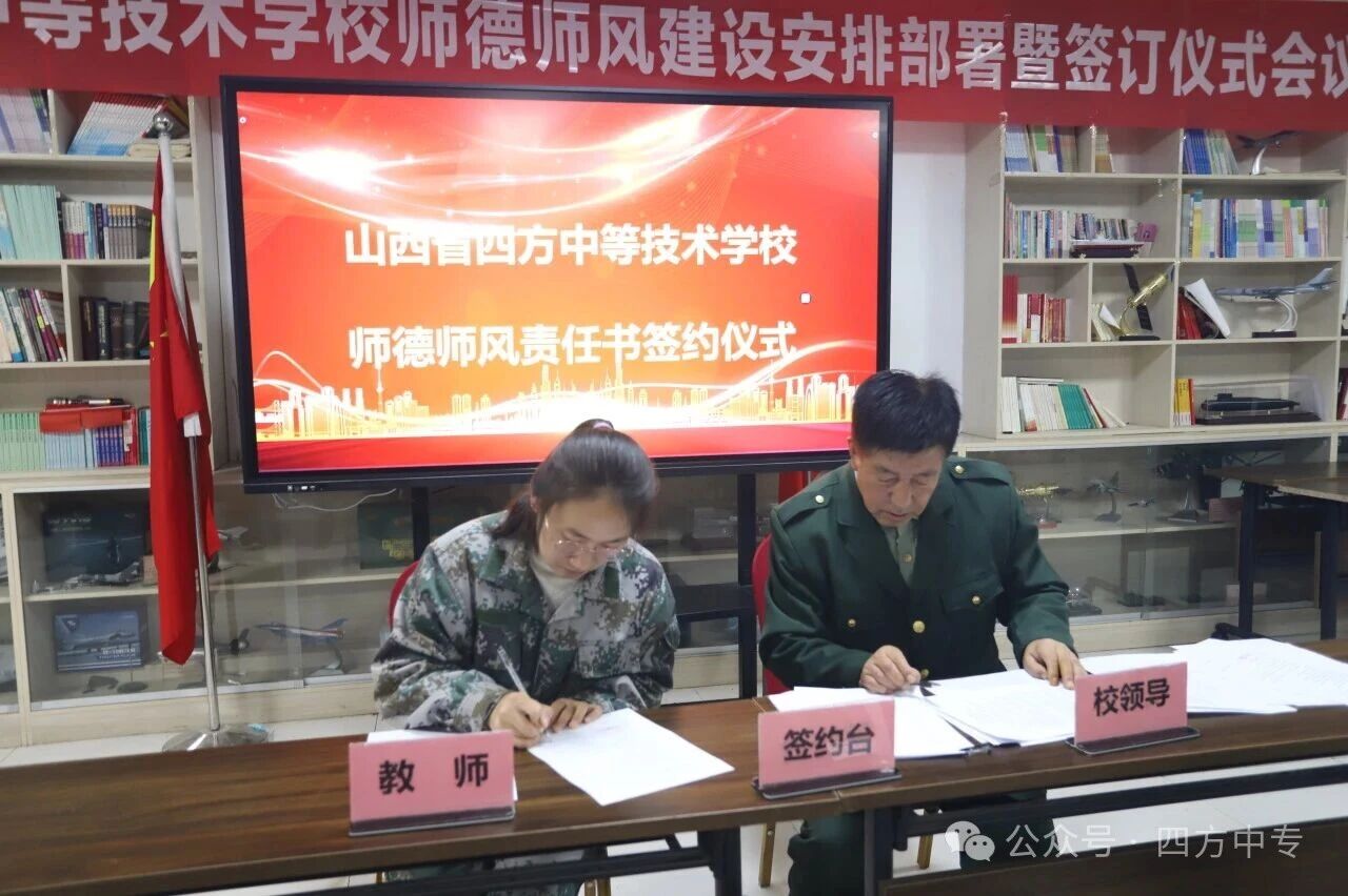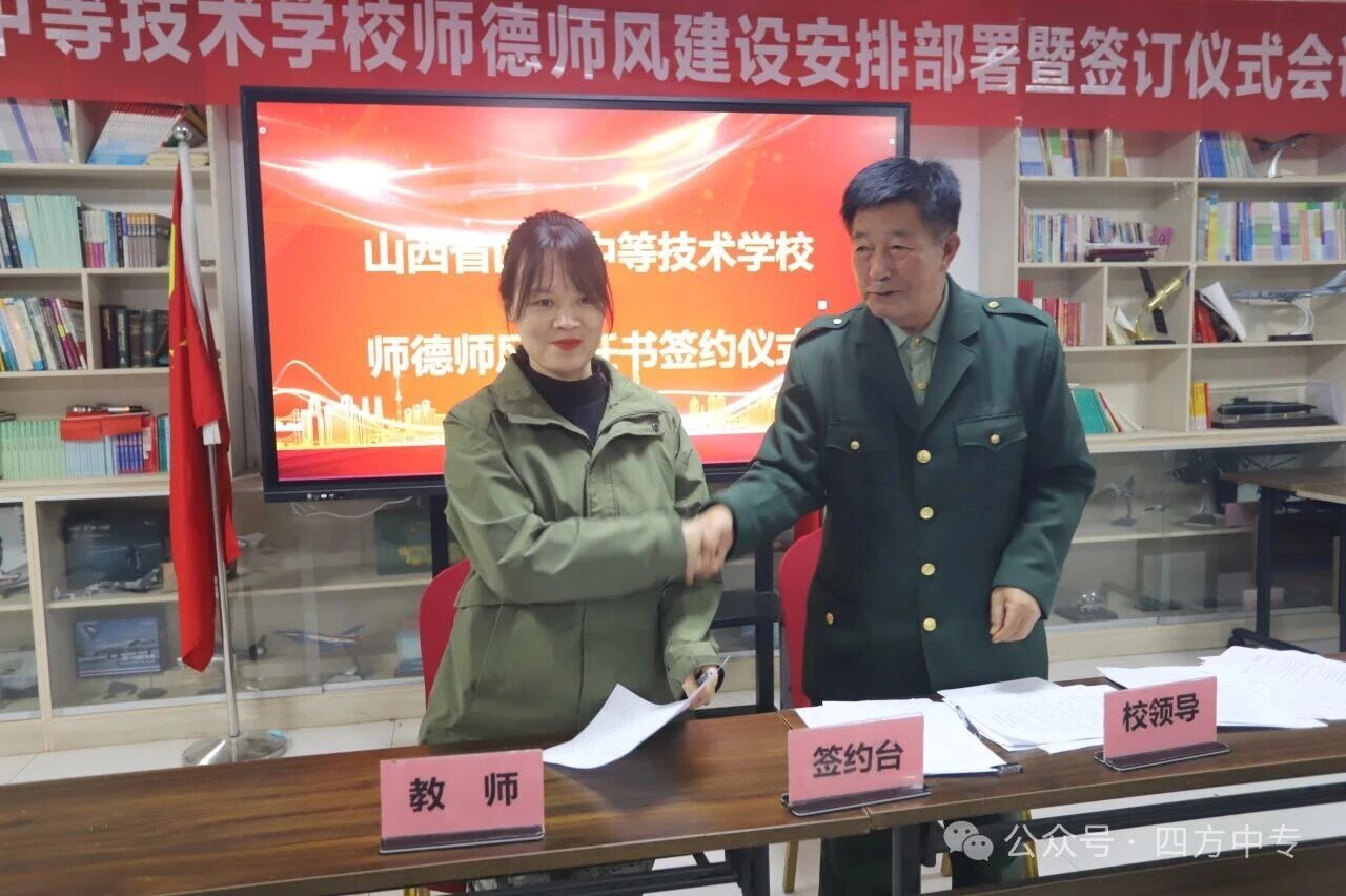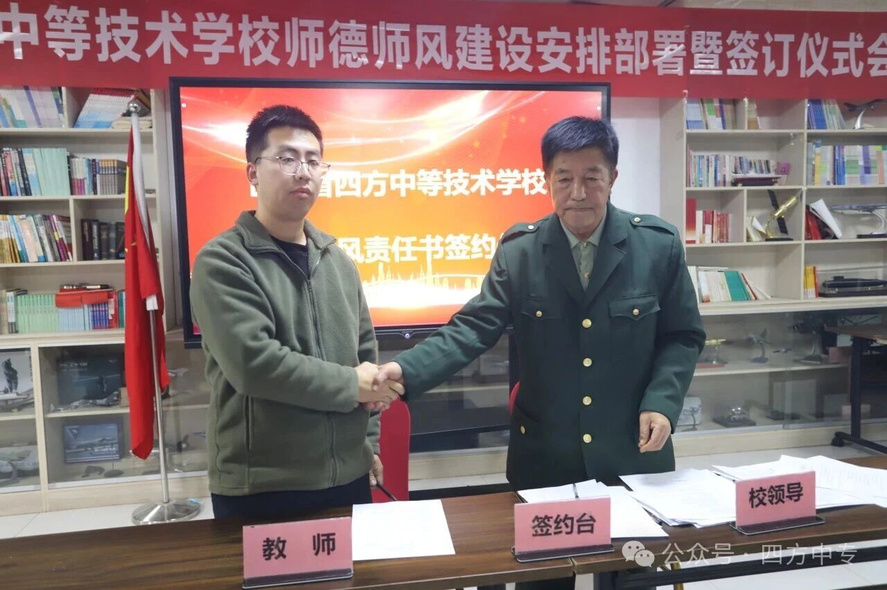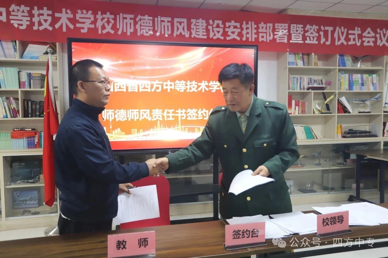 会上王万林书记分别与全体教职工依次签订了《师德师风建设责任书》。签下责任书代表着在今后的工作中,每一位四方教师都将履约践诺,更加明确了教师在思想政治、教育教学、廉洁从教等方面的具体责任和违规处理办法,实现“一人一书”、全员覆盖,将师德师风要求转化为可落实、可监督的具体责任。