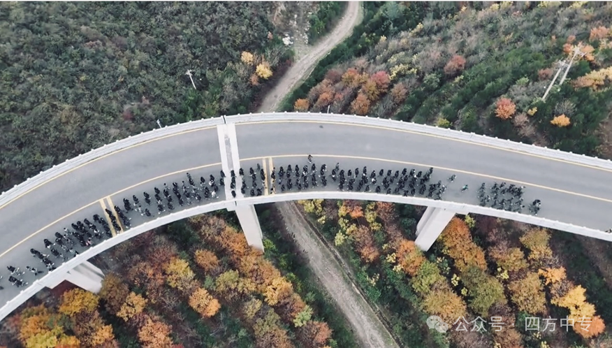 金秋十月的天龙山公路,是天然的“彩色画卷”——火焰般的枫叶热烈绽放,黄金般的银杏叶随风轻舞,游龙般的山峦层叠起伏,一步一景皆成诗画。国防班全体学子身着统一服装,以整齐队列、铿锵步伐穿梭其间,昂扬的斗志与绚丽秋景相映成趣,为这段征途平添了一道充满青春力量的亮丽风景线。