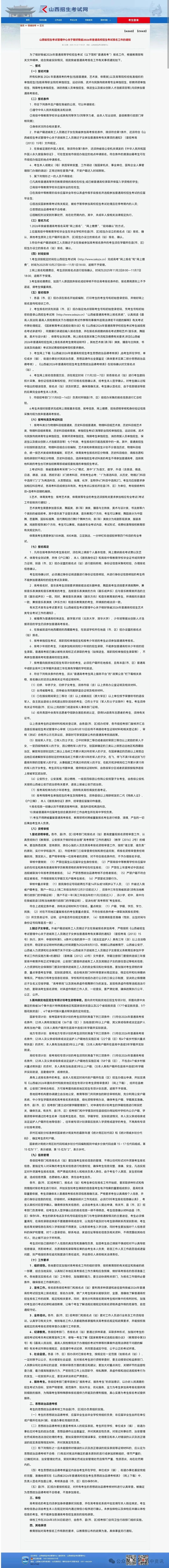8、其它要求详情请登录“ 山西招生考试网 ”查阅《山西省招生考试管理中心关于做好我省2026年普通高校招生全国统一考试报名工作的通知》或见附件。