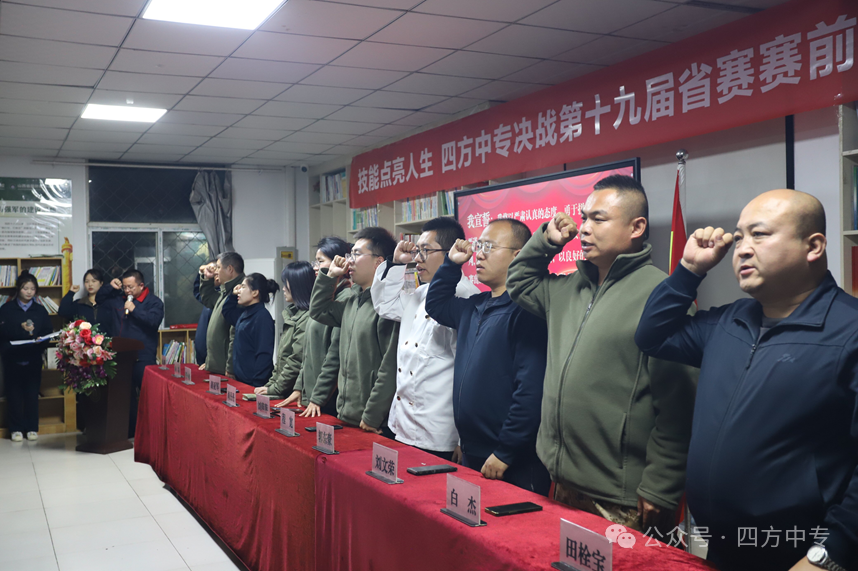 大会在刘校长热情洋溢且极具感召力的动员讲话中拉开帷幕。她深刻阐述了技能大赛对于推动学校内涵发展、促进教学改革、提升学生综合竞争力的重要意义,指出省赛不仅是技能的竞技场,更是展现我校师生精神风貌的重要窗口。 刘校长高度肯定了前期各项目团队在训练中付出的努力与取得的进步,并对冲刺阶段的工作提出了“三个精准”的要求:精准施策,优化最后阶段的训练方案;精准保障,举全校之力,为参赛师生提供各项支持;精准发力,聚焦赛项,查漏补缺,实现突破性提升。 她勉励全体参赛选手要坚定信心,沉着应战,将压力转化为动力,在省赛舞台上赛出水平、赛出风格、赛出四方风采。 大会隆重介绍了本次参赛的各个专业代表队。我校本次参赛教师18人次,参赛学生107人次。他们是学校技能教育的杰出代表,是未来工匠精神的传承者与践行者。 引路领航,倾囊相授。参赛教师代表——无人机操控与维护专业的王云飞老师的发言,既是对过往辛勤耕耘的深刻总结,更是对冲刺阶段“精雕细琢、全程护航”的庄严承诺。 一番肺腑之言,充分彰显了我校师资队伍高度的责任担当与无私的奉献精神,为参赛学子注入了强大的信心与底气,奠定了冲刺阶段“科学施策、精准发力”的坚实基础。 青春宣言,壮志飞扬。参赛学生代表——中餐烹饪专业李奥帅同学的发言,激情澎湃,掷地有声,生动展现了四方学子锐意进取的精神风貌和誓夺佳绩的坚定信念。 从他的发言中,我们看到了“技能成就梦想”的执着追求,感受到了“初生牛犊不怕虎”的昂扬锐气。这不仅是出征前的自我激励,更是对学校、对师长殷切期望的响亮回答。 我们坚信,这份源自心底的豪情与担当,必将转化为赛场上的沉着冷静与出色发挥,铸就明日赛场的辉煌。 铮铮誓言,斗志冲霄。在激动人心的宣誓环节,全体参赛项目的参赛教师、学生代表与指导教师集体庄严宣誓。铿锵有力的誓言回荡在整个会场,充分展现了我校师生敢于亮剑、舍我其谁的豪情与担当。 号角已吹响,利剑已出鞘。我们坚信,在学校领导的坚强领导下,在全体指导教师的悉心指导下,在参赛同学们的奋力拼搏下,我校参赛教师及学子们定能在即将到来的省赛中披荆斩棘,再创佳绩,为个人职业生涯添彩,为学校高质量发展增光!