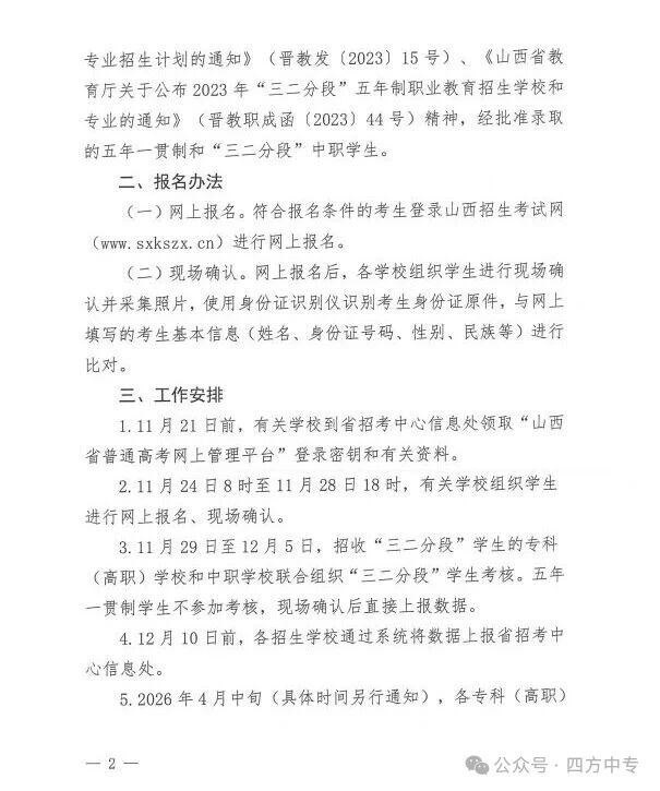 为了做好我校2026年“三二分段”学生转段升学工作,根据山西省招生考试管理中心有关文件精神,结合我校实际情况,现就我校“三二分段”学生转段升学工作有关事项通知如下。