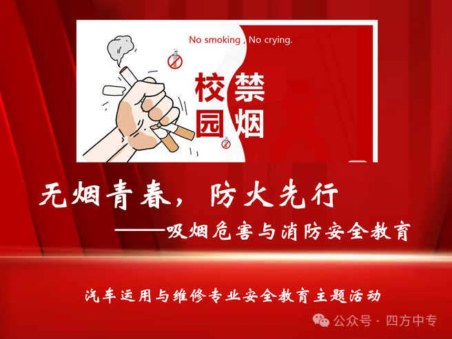 为增强全体学生对吸烟危害的全面认识,特别是提升消防安全意识与自救互救能力,筑牢校园安全防线,我校汽车运用与维修专业于2025年11月28日下午举办了融合健康教育与消防安全学习的主题教育活动。