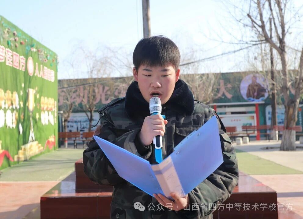 老师们,同学们!五星红旗仍在飘扬,一二九的精神永放光芒。让我们以史为鉴,把爱国之情化为报国之行;让我们以自强为帆,用技能之桨驶向梦想的彼岸。最后,让我们共同喊出心中的誓言:“铭记历史,振兴中华!技能报国,吾辈自强!”