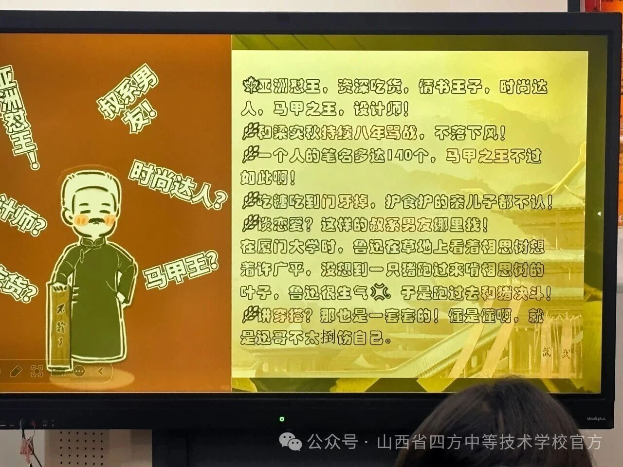 “同学们,今天我们要认识一位‘老朋友’——鲁迅。但在上课前,先看看你们眼里的鲁迅,和我眼里的鲁迅是不是一样?”许老师笑着点开PPT,屏幕上赫然出现几个大字:鲁迅的“隐藏身份”。