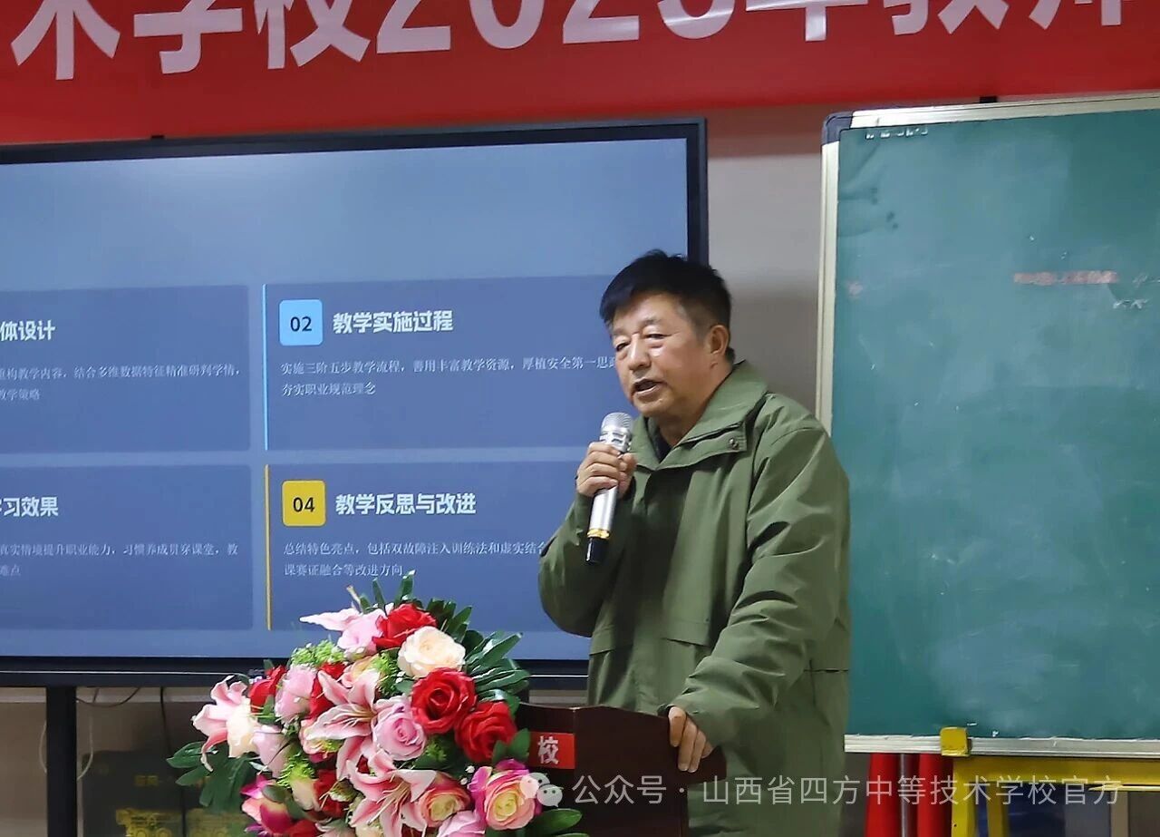 校党支部王书记为大赛致辞,对全体教师的辛勤耕耘予以高度肯定。他强调,教学能力是教师的立身之本,是学校发展的核心动力,期望全体教师以赛促教、以赛促研,争做新时代“工匠之师”的典范。