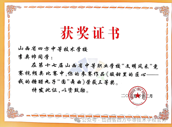 李奥帅同学《酸甜里的匠心——我的糖醋丸子“圆”舞曲》荣获视频类三等奖